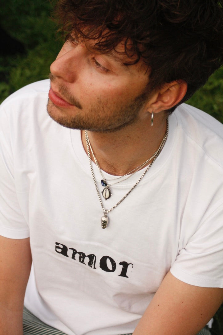 T-Shirt mit Print "amor" in schwarz. Gedruckt von Hand auf ÖKO-TEX-Shirts aus 100% Baumwolle. Verwendung von ausschließlich veganer, wasserbasierter Farbe. Jedes Shirt ist ein Unikat, daher kann es kleine Unterschiede zwischen deinem Produkt und der Darstellung im Shop geben. Ich produziere erst auf Bestellung. Ich habe Bestellzeiträume, diese kannst du dem Header ganz oben auf der Seite entnehmen. Dort findest du immer den aktuellen Bestellzeitraum und die frühstmögliche Lieferung.